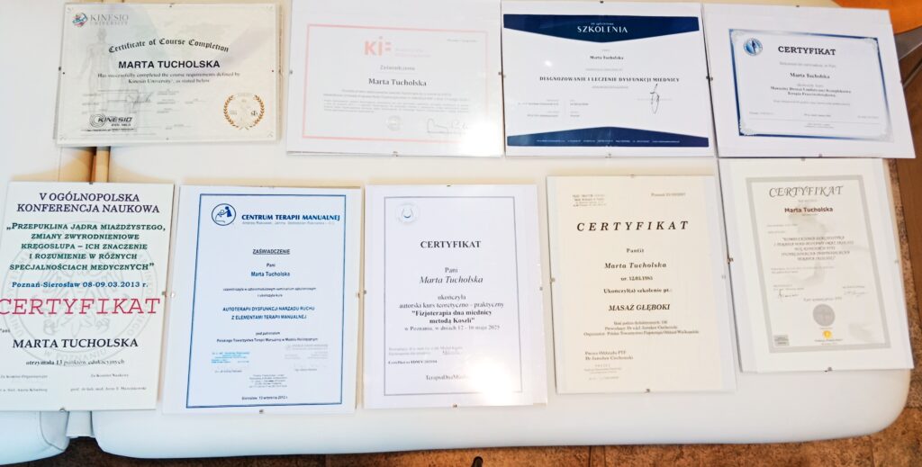 Marta Tucholska Posiadam wszystkie niezbędne kwalifikacje i certyfikaty do prowadzenia praktyki fizjoterapeutycznej.